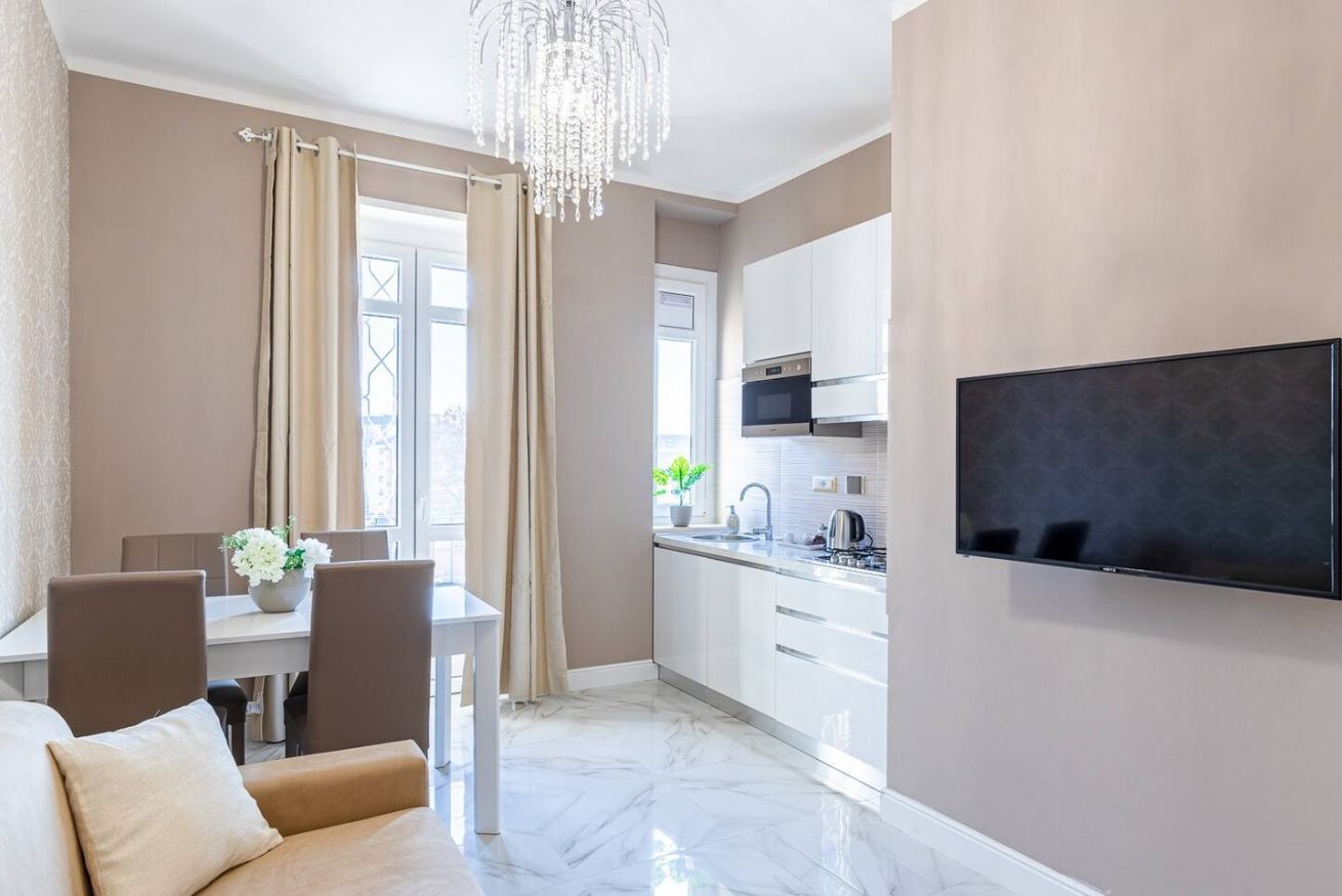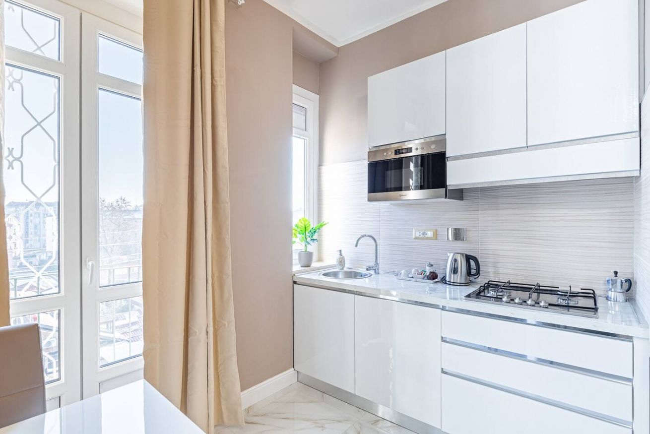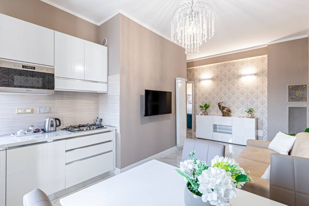 - Zona giorno open space con: SMART TV con Netflix, cucina attrezzata, forno a microonde, divano letto